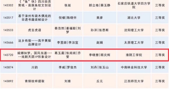 近日“第八届米兰设计周高校设计学科师生优秀作品展”命题赛场国赛评审结果公示,永乐高131net学子在大赛中喜获佳绩,张阅阅、葛玉晨、刘柯创作的《敦煌飞天——二十四节气书签及延展设计》获国家级一等奖,徐志文、张秉轩、叶沛茹创作的《春分——绿里奇迹》获国家级二等奖,葛玉晨、张阅阅、乔莹、徐缘缘创作的《婀娜如梦,国风当道——戏剧天团IP形象设计获国家级三等奖。